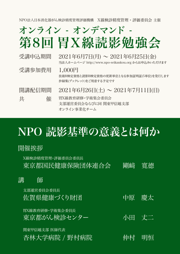 NPO法人日本消化器がん検診精度管理評価機構 第8回胃Ⅹ線読影勉強会「NPO読影基準の...
