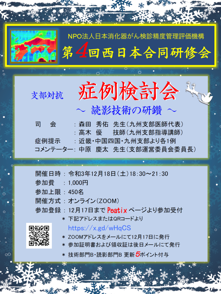 NPO法人 日本消化器がん検診精度管理評価機構主催のオンライン研修会のご案内です。